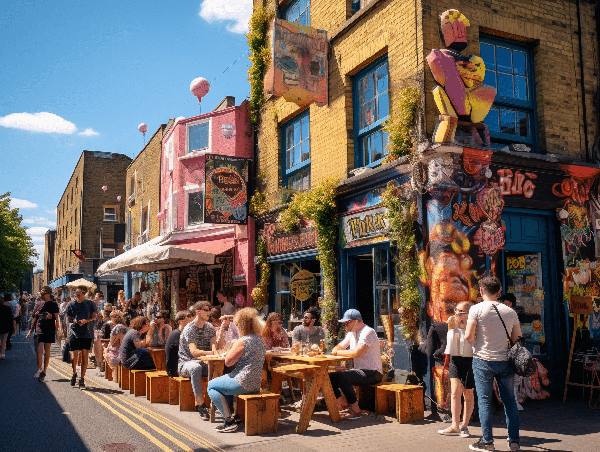 Au-delà de l’art visuel, Camden Town est un épicentre d’activités culturelles et de loisirs. Des salles de concert mythiques comme le Electric Ballroom ou le Jazz Café continuent de faire vibrer les murs avec des performances live qui résonnent au cœur de la tradition musicale du quartier. Camden Town propose aussi un éventail de pubs historiques, de restaurants cosmopolites et de cafés pittoresques où se régalent autant les papilles que l’esprit. Chaque recoin de ce quartier vibrant offre une variété d’expériences, de marchés et de sites culturels qui ne manqueront pas de marquer les esprits.