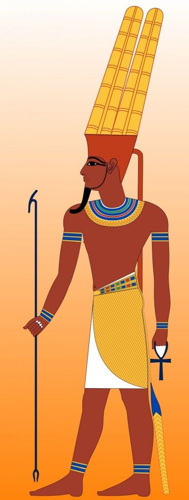 Osiris règne sur le royaume des morts, tout en incarnant les cycles de la nature : la végétation, l’eau, le soleil. Fils de Geb et Nout, il partage le pouvoir avec sa sœur et épouse Isis. Ensemble, ils donnent naissance à Horus. Osiris est généralement figuré sous une apparence humaine, enveloppé dans des bandelettes, coiffé d’une couronne blanche et tenant le sceptre et le fouet, attributs pharaoniques. Son culte, parmi les plus anciens, a traversé toute l’histoire de l’Égypte pharaonique.