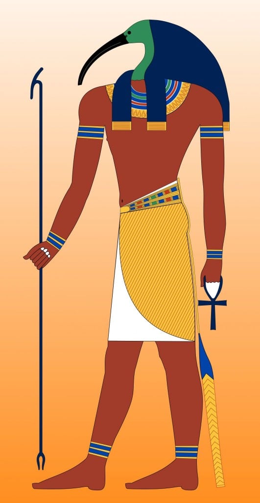 Thot, dieu de la sagesse, des sciences, du droit, de l’écriture et de la magie, occupe une place singulière. Il est souvent figuré sous les traits d’un ibis ou d’un babouin, sa tête surmontée d’un croissant de lune. Son culte prend racine en Basse-Égypte, là où l’ibis était déjà révéré à la Préhistoire. Intégré à l’Ennéade à la place de Seth, Thot devient messager des dieux, maître des calculs, de la mesure et de l’inventivité scripturale. On lui attribue l’invention de l’écriture et la fonction de scribe auprès du dieu suprême Rê.